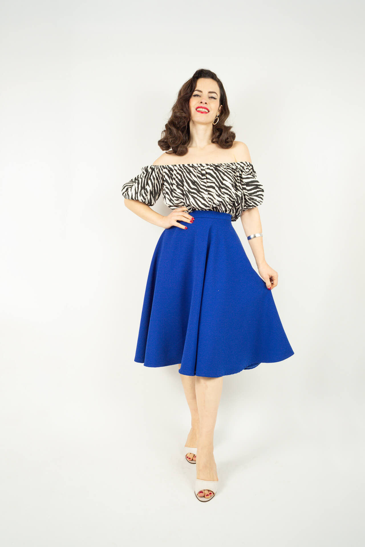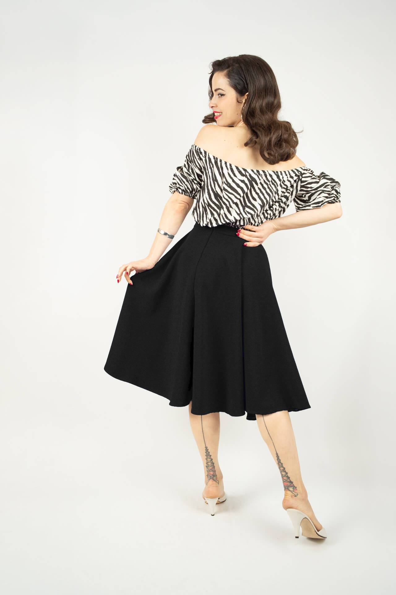 La falda de capa es la falda de vuelo por excelencia. Esta es un tributo a las piernas de Hollywood: la bailarina y actriz Cyd Charisse.